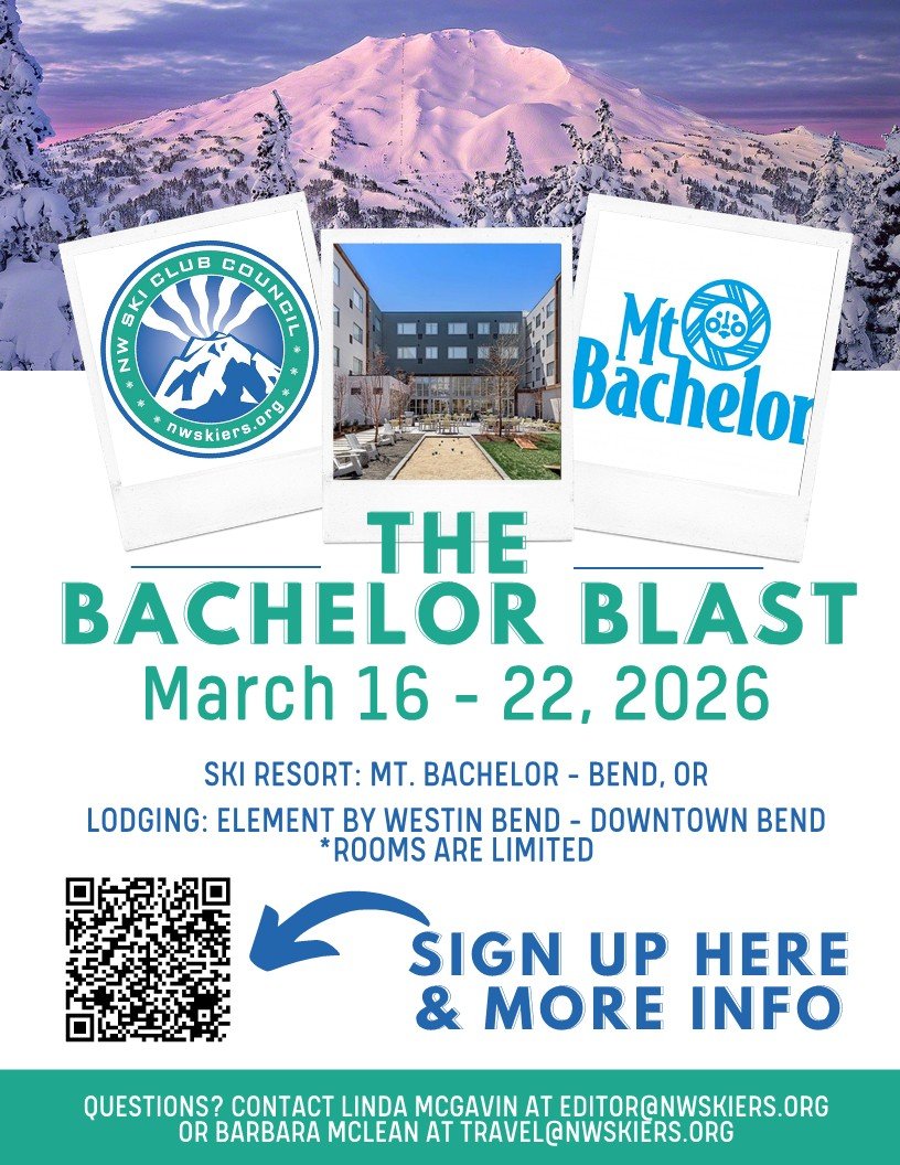 We are pleased to announce that the Bachelor Blast will be held during the week of March 16-22, 2026. We again plan to stay at he Element Bend Hotel, which is located only 4 blocks from downtown Bend.